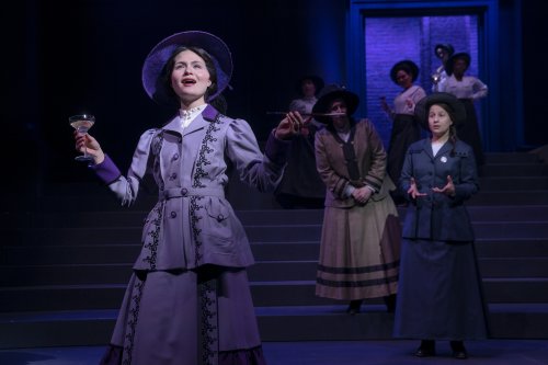 Unfortunately, while Wells and Mary Church Terrell (Cassondra James), another renowned Black suffragist, occasionally pop up to offer intersectional insights, they mostly come across as an addendum to the all-female and nonbinary musical’s Paul-centric narrative. Taub knows Wells and Terrell obviously belong in the story she’s trying to tell, but she hasn’t figured out how to dramatize their inclusion yet. Other suffragists whose names should be much more well known today also receive paper-thin characterizations: Lucy Burns (Ally Bonino); Doris Stevens (Nadia Dandashi); Ruza Wenclawska (Hannah Cruz); Inez Milholland (Phillippa Soo).