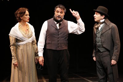 The surviving original creators, book writer Sherman Yellen and lyricist Sheldon Harnick, have written a new streamlined version of the show now called Rothschild & Sons which is being given its world premiere by the York Theatre Company. With a cast of eleven (most playing multiple roles) led by Cuccioli now playing patriarch Meyer and an orchestra of three, the show is a powerful study of anti-Semitism in Europe at the end of the 18th century and the beginning of the 19th century and the desire of the Rothschild family to break down both the walls of poverty and those of prejudice. While the new adaptation performed in one act is both engrossing and admirable, it may not be the definitive final version as it is devoid of humor, a necessary ingredient to make a musical popular.