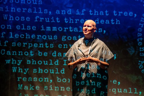 Cronican’s performance as Dr. Vivian Bearing, a specialist in the metaphysical poetry of John Donne, is captivating, by turns imperious and arrogant, funny, and vulnerable. Her desperation to remain in control of her impossible situation is heartbreaking, yet she hangs onto her grace and self-respect with an admirable strength of character. Cronican embodies the role as though she might herself be a Stage Four cancer patient.