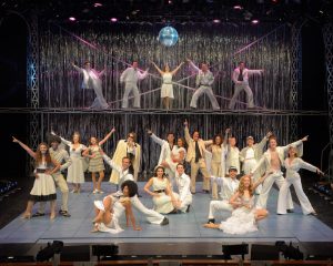I recently returned to the Westchester Broadway dinner theater to check out their current offering, “Saturday Night Fever” (directed/choreographed by Richard Stafford), which is booked into January 2017 (with a hiatus in December for a holiday show). There are some good performances and some fun moments–enough for me to be glad I went to see it.