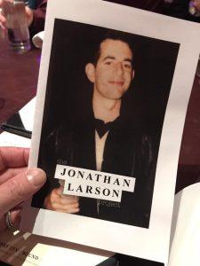 If I may interject a personal note… Sixteen years ago, I actually asked the agent representing Jonathan Larson’s interests if I could produce a concert of Larson’s unknown songs. I could not get the go-ahead at that time, and that concert evolved into “Jonathan Larson’s Musical Heirs,” hosted by my friend Karen Oberlin, who had been in an early workshop version of Rent. But I was happy to honor Jonathan Larson in some way–he was a tremendous artist–and I was glad that his father, Al Larson, and his former girlfriend, Victoria Leacock Hoffman, attended that show.