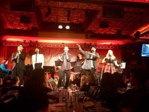 The concert at Feinstein’s/54 Below was done beautifully. Andy Mientus (whom you may recall from the NBC TV series “Smash”; he was a standout on that show as he was a standout here) was an ideal lead singer on “Valentine’s Day” (an excellent song that was cut from Rent). Such a gorgeous voice! He was effective, too–strong and penetrating in his delivery–on “S.O.S.,” which Larson wrote for a proposed musical adaptation of George Orwell’s 1984. (The Orwell estate would not give Larson permission to do a musical version of 1984; and that’s a pity, judging from this potent song.)