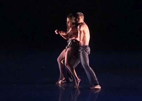 The former was a well danced duet for Sarita Apel and Ari Mayzick to music by Oleta Adams. The two first appeared to be romantically attached, although Ms. Apel kept slipping away. They sometimes dance separately, but reunited for lovely lifts and intertwinings. Finally, and sadly, she simply walked away leaving him bewildered.
