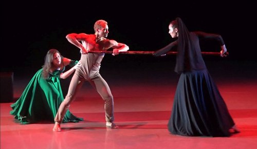 Tyler Clark, Ari Mayzick and Leann Gioia in a scene from Eleo Pomare’s “Las Desenarmoradas” (Courtesy of Alpha Omega Theatrical Dance Company)