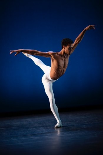 His “Dance of the Blessed Spirits,” to the music of Gluck, was a calm, stately solo performed by the intensely self-contained Joseph Sissens, bare-chested in white tights. (Sissens showed other facets of his talent later in the program.) Slow walks, prayerful gestures marked this solo, one of Ashton’s simplest.