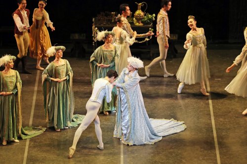 In these times when most dance performances lack a set of any kind, it was wonderful to see the extravagant and lush sets and costumes designed by Peter Farmer. He used jewel-toned colors for the international party guests and, of course, black or white tutus for the swans. Rothbart’s enormous, feathery cape was menacing and scary. Howard Harrison’s lighting designs gave the lake scenes an otherworldliness, and the party scenes a bright and celebratory look. Their designs helped to transport us to glamorous or ethereal locations, far from our everyday lives, which is one of the pleasures of story ballets.