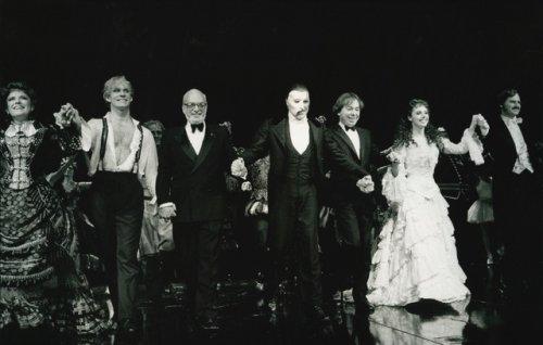 Harold Prince and the cast of “The Phantom of the Opera” taking their opening night bows at the Majestic Theatre, January 26, 1988 (Photo credit: courtesy of the author’s collection)