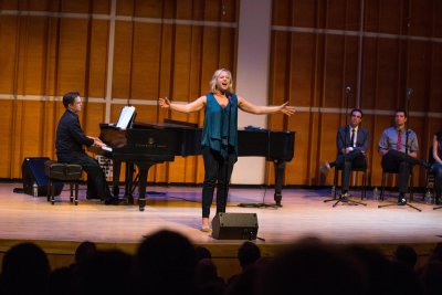 Sally Wilfert as she sang her medley of songs at in Broadway Close Up: William Finn (Photo credit: David Andrako)