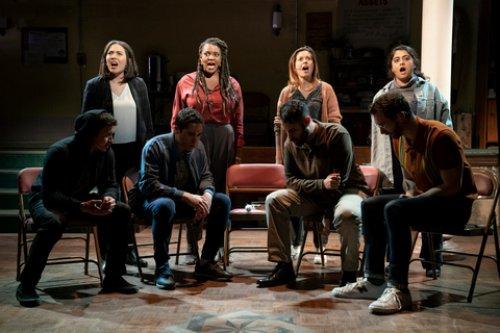 Malloy, who wrote the book, music and lyrics, has taken a novel approach, staging Octet as if it were a 12-step program in which all the members of the group express their inner thoughts through a cappella singing all the while following the precepts of an AA or OA meeting. Director Annie Tippe has taken this sophisticated mass of brilliance and shaped it around the sensational talents of a small cast which performs miracles of acting and singing.