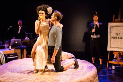 Lying on her death bed from tuberculosis, Marie first addresses us with her advice and wisdom and then reenacts her life from abject poverty living on fried potatoes to becoming one of the most famous and sought after women in France. The text is a mash-up of fractured French (always translated for our benefit) and colloquial English, with such modern references as microphones, spam, existentialism, rom-com, Australian director Baz Luhrman and actor Ewan McGregor, both responsible for the film Moulin Rouge, the latest depiction of Marie’s story.