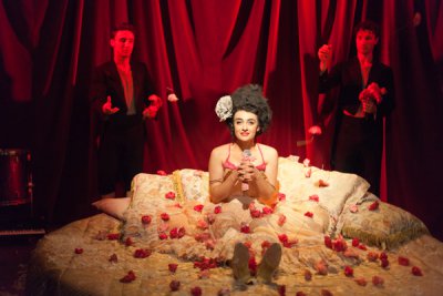Definitely not for children, Songs for the Fallen is a sophisticated cabaret/vaudeville celebrating the decadent life. Its main character Marie Duplessis, better known today as Marguerite Gautier, aka Camille, gives Australian singer/actress/playwright Sheridan Harbridge a star turn of which she takes full possesion. You may feel as exhausted as Harbridge’s Marie looks at the end of this dense and crowded show, but you will know you have had a complete theatrical experience.