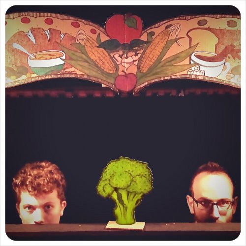 A brief, amiable, two-man folk musical performance piece about food, with puppets and audience participation, that’s also suitable for children.