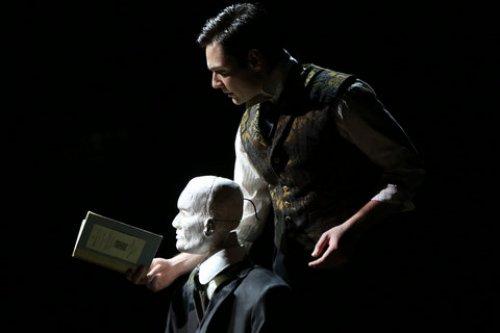 Tom Pecinka as Chris with life-sized mannequin of his father Harrison Aherne in a scene from Theatre for a New Audience’s production of Adrienne Kennedy’s “He Brought Her Heart Back in a Box” (Photo credit: Gerry Goodstein)
