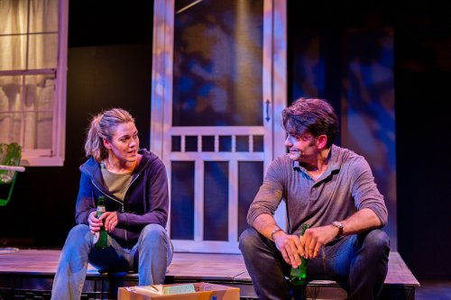 Kat’s objective, apparently, is to come back to her unhappy childhood home to try to make some sense of the past, but that’s a rather loose aspiration. The character is asked early on why she has returned, and she claims she doesn’t know. Part of the reason for the return appears to be a burning curiosity about how much the people around her knew of or suspected the sexual dimensions of the hell her father was putting her through and, more pointedly, why—if they suspected—they didn’t come to her aid. The first half of the play seems to be largely about her rekindled alliance with Sam, but after the (rather unnecessary) intermission, the focus shifts to her relationship with sister Beth. (Orlando proves a good choice to play Beth in at least one regard: she and Perry bear a strong resemblance to each other and are thoroughly believable as siblings.)