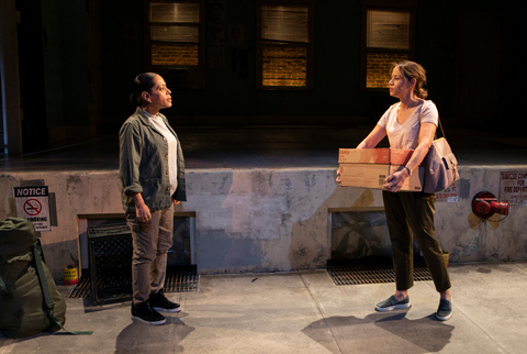 Liza Colón-Zayas and Elizabeth Rodriguez in a scene from Stephen Adly Guirgis’ “Halfway Bitches Go Straight to Heaven” (Photo credit: Monique Carboni)