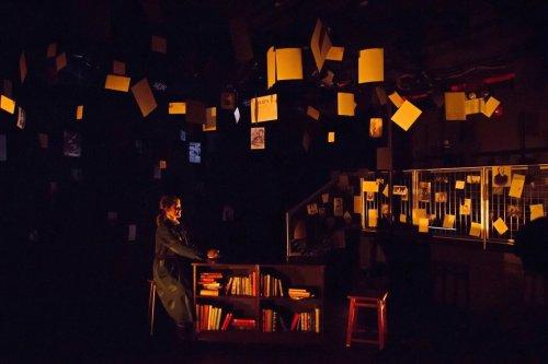 The set by Marisa Kaugars consists of a large desk and several smaller, portable pieces of furniture moved about to indicate setting changes, plus hundreds of reproductions of letters, postcards, photographs and cables hanging on wires from the ceiling. During some of the drier, expository scenes, it is difficult not to scan these historic materials for hints of personal reflections and telling photos of the real historical characters so mechanically drawn in Ms. Rice’s scenario.
