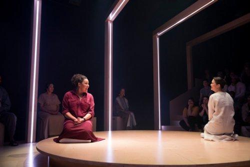 Linda Powell and K.K. Moggie in a scene from Christopher Chen’s “Passage” at the Soho Rep (Photo credit: Julieta Cervantes)