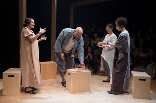 Purva Bedi, David Ryan Smith, K.K. Moggie and Lizan Mitchell in a scene from Christopher Chen’s “Passage” at the Soho Rep (Photo credit: Julieta Cervantes)
