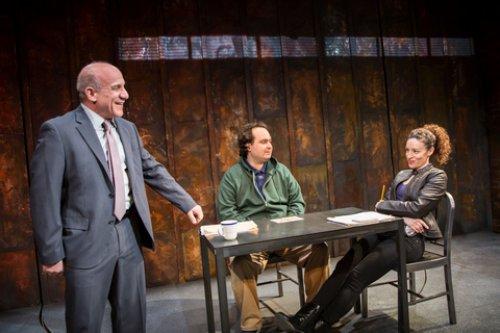Paul Ben-Victor, Ali Arkane and Tricia Alexandro in a scene from Lyle Kessler’s “Perp” at The Barrow Group (Photo credit: Edward T. Morris)