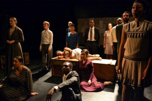 The production, however, does have its weaknesses. The busy set design by Tekla Monson requires the continual moving around of boxes and crates for each scene, many of which could have been more quickly achieved with simple projections. Each member of the cast of 13 plays many roles in this panoramic story but they are not equally suited to all of them. If you are familiar with the novel, you will be thrown by many of the character interpretations that are contrary to Larsen’s depictions in the novel, which may be the choice of the playwright or the director. Asia-Anansi McCallum’s costumes are often unsuitable for various characters and particularly the 1920’s period.