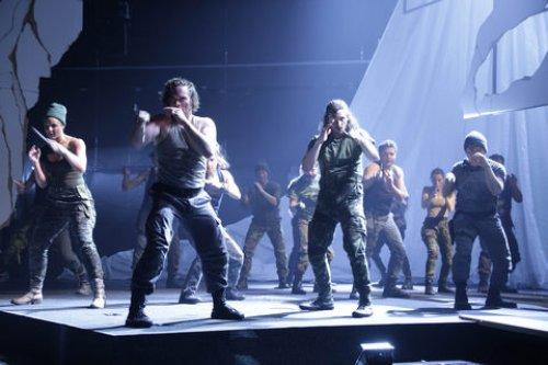 The company of “The Tragedy of Julius Caesar” at Theatre for a New Audience (Photo credit: Gerry Goodstein)
