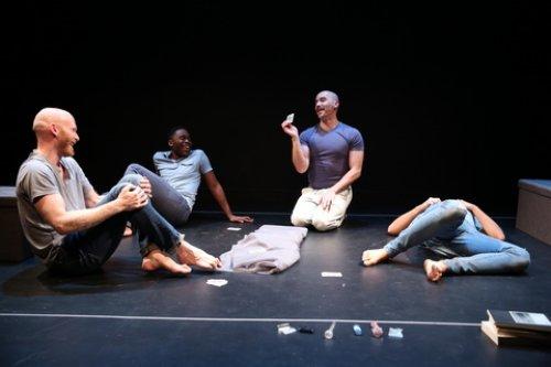 Joshua Bouchard, Julian Joseph, Ibsen Santos and Marc Sinoway in a scene from Charles Gershman’s The Waiting Game” (Photo credit: Carol Rosegg)