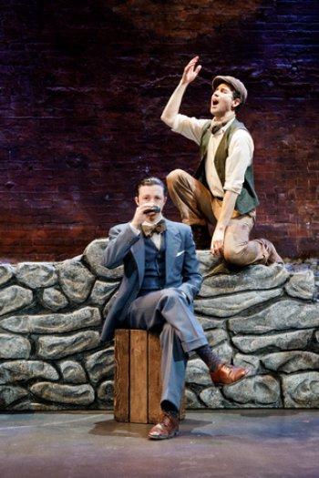 Wilson Chin’s stylized setting for the first act is a piece of a ruin with some boxes and a bench, backed by the brick wall of the theater. In no way does this suggest the magnificent hilltop view of the country that the characters describe. In the second act, the ruined wall is reversed to become the interior of Yehuda’s home on the kibbutz which also does not suggest life in such a location. The period costume designs by Jen Caprio define how the characters see themselves (Heifetz and Moshe in three-piece suits, Yehuda in work clothes) without becoming obtrusive or particular. John Froelich’s rather bland lighting is suitable but misses its opportunities to create more atmosphere on the stylized sets.