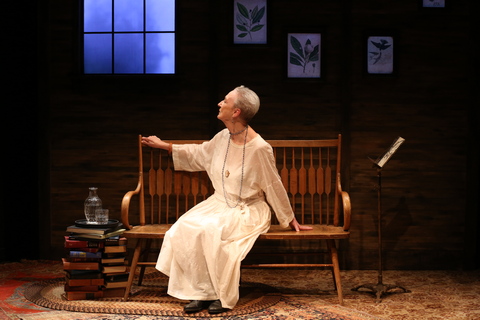 Chalfant has us eating out of her hand as she feeds us spicy pieces of her story and then digresses to some other topic like her love of nature, the future of the island or her travels with her husband to the world observatories. She also addresses her unseen, off-stage daughter Millicent who helped her edit the updated collection of Dickinson’s poetry which was published in 1931, making her very much a part of the play and a very real presence. Under Fratti’s direction Chalfant addresses Millicent in various parts of the room we are sitting in, varying her perspective as the talk unfolds. The use of the tiny Theater C at 59E59 Theaters makes the play a very intimate experience, almost as though we are sitting in the living room of the island inn which gives verisimilitude to the play.