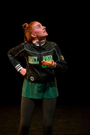 The life and career of a young competitive Irish step dancer is depicted in this entertaining solo play written and performed by Margaret McAuliffe.