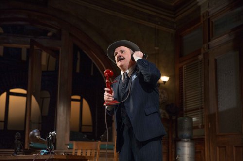 However, many in the cast make the most of their opportunities. Mays is hilarious as Bensinger, the professorial, hypochondriac, and germ phobic reporter for the Tribune who is obviously in the wrong profession. In the small role of the emissary from the governor’s office with a reprieve for Williams, Morse makes every moment count as he finds puny reasons not to take the bribe that the mayor offers. Taylor is fine as the frustrated and outraged mother-in-law-to-be, while Scott turns streetwalker Molly Malloy who has found a soft spot in her heart for Earl Williams into a tragic figure. Micah Stock turns the role of the dour German policeman Woodenshoes Eichhorn into a star turn. Among the many reporters who come and go throughout the play, Lewis J. Stadlen as wry, sour Endicott of the Post, and Dylan Baker as McCue of the City News Bureau who turns phone interviewing into a fine art stand out.