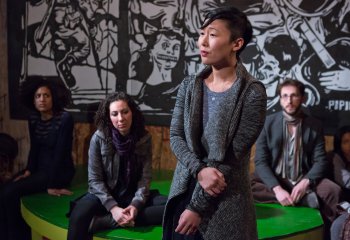 In the end, though, The Place We Built turns out to be more of a theatricalized documentary than a play, however vivid, important, and revelatory its message. The conglomeration of episodes that keep tumbling over each other mainly to accumulate unnecessary background information lessens the thrust of the real drama—the imminent raid—at the expense of exposition. The play is held afloat by its determined, if motley, cast of fierce young actors.