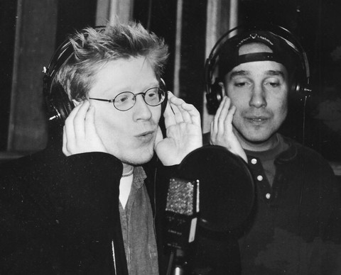 Anthony Rapp and Timothy Britten Parker at the “Rent” cast-album recording session, 1996 (Photo credit: Chip Deffaa)