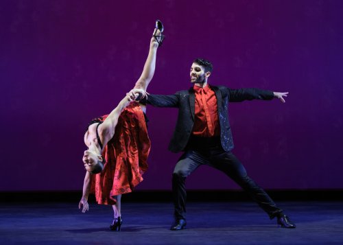 Fatima Andere and Antonio Cangiano in Pedro Ruiz’s “Club Havana” seen at Ballet Hispánico’s spring 2023 season at New York City Center (Photo credit: Erin Baiano)