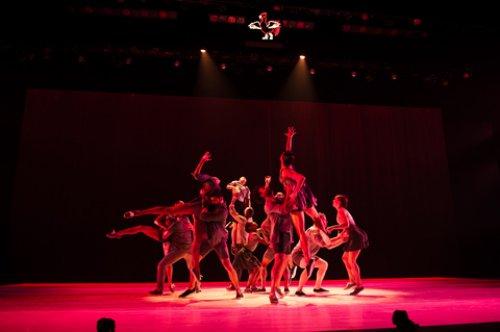 “Linea Recta,” choreographed by Annabelle Lopez Ochoa to a flamenco style guitar score by Eric Vaarzon Morel turned the ancient art of flamenco on its ear. In chic outfits designed by Danielle Truss—red approximations of ruffled dresses and tight red pants—the dancers plugged energetically through Lopez Ochoa’s fierce steps, the women alternating with the men until they joined up for sassy partnering and movements racing through artful lineups and circles.