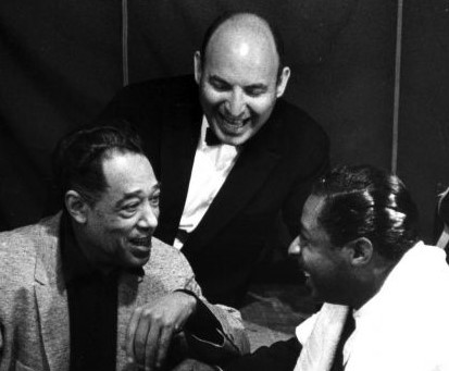 The photos I’m choosing show him with jazz artists Bobby Hackett and Louis Armstrong; with Duke Ellington and Erroll Garner; with his wife, Joyce.