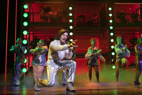 As Diamond becomes more of a cult figure, the choreography and costuming (by Emilio Sosa) get more and more extravagantly frenetic and gaudy. Along the way his hairdo goes from sixties pompadour to shaggy and back to short again (hair and wig design by Luc Verschueren) all brilliant lit by Kevin Adams.