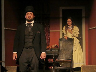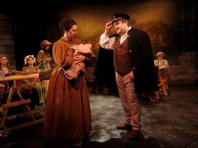 Emily Stine as Susan Henchard and John Wiethorn as Captain Newson in a scene from “Casterbridge” (Photo credit: Rosalie Baijer)
