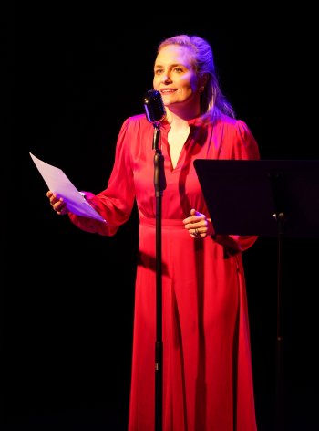 The music by Scully is very melodic in a pleasing old fashioned way. However, the lyrics by Evans with additional lyrics by Chad Gorn vary tremendously from simple to complex, and are mainly driven by ballad stanzas in repeated refrains. Among the most successful songs are Ella’s plaintive “Christmas Together” when she finds out that Hughes will not be arriving until after Dec. 25 which is quite lovely. “Do It, Noah” is a very clever patter song summing up the strained relationship between Hughes and Dietrich. “Attracted to You”, the duet for Hughes and Hepburn, is attractive in a Cole Porter manner. As in a dream sequence, Ella long after their divorce gets to sing the lovely “What Did You Expect.” Hepburn sings the powerful “Til the Next Time?” when they meet again backstage at the Shubert Theatre where she is appearing in The Philadelphia Story.