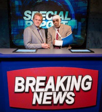 Isaac Miller and Juan Villegas in a scene from “America’s Favorite Newscaster” (Photo credit: Jeremy Daniel)