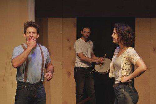 Garen McRoberts as Adam, Matthew LaBanca as the Snake, and Savannah Frazier as Eve in a scene from “The Apple Tree” (Photo credit: Tyler Milliron/Milliron Studios)