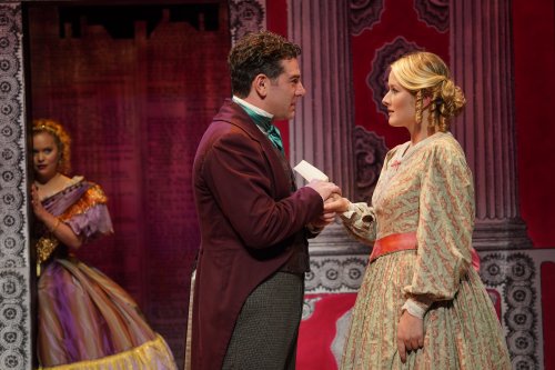 It’s a reality that makes for some great not-so-far-fetched villainy, with Moore taking satiric joy in tunefully presenting Boucicault’s three baddies: Bloodgood; his spoiled, status-obsessed daughter Alida (the hilarious Amanda Jane Cooper); and Badger, an inept, would-be blackmailer whose inconsistent morality fluctuates with the demands of the plot. The show’s best songs belong to them, particularly Cooper’s solo “Oh How I Love Being Rich,” which she performs with a superlative haughtiness that might have even turned J.D. Rockefeller into a union man. The pompous effect is aided immeasurably by one of the several ostentatious ball gowns costume designer Linda Fisher provides for Cooper.