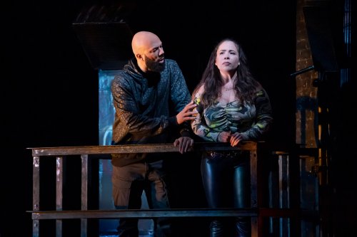 Stuffed to its edges with a lifetime of Pops’ possessions, including a drooping, severely past-its-date Christmas tree, Walt Spangler’s turntable apartment set is a decent metaphor for much of what’s weighing Pops down; it’s also a fitting way to visualize Guirgis’ struggle to wrangle a whirligig of ideas into a coherent shape that dispenses exposition as effortlessly as philosophy. To varying degrees, all of the characters in the play–especially the putatively honorable ones–are hustlers, which Guirgis becomes himself to finagle Between Riverside and Crazy an emotionally satisfying ending that, like all good cons, goes unquestioned while it’s happening. It would have been better if Guirgis simply had opted for another rewrite or two.