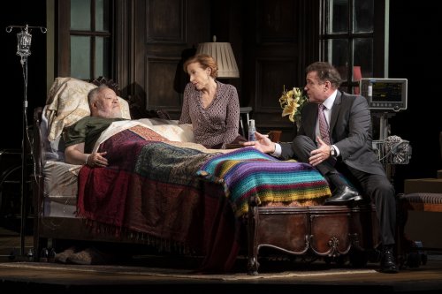 Stephen McKinley Henderson, Elizabeth Canavan and Michael Rispoli in a scene from Stephen Adly Guirgis’ “Between Riverside and Crazy” at The Helen Hayes Theater (Photo credit: Joan Marcus)