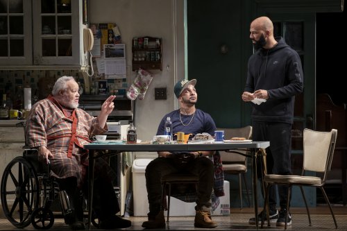 But it’s also possible Oswaldo and Lulu are less interested in acquiring a father figure than in continuing to enjoy complimentary room-and-board. Like Junior, neither is a stranger to deception, or committing a felony, making it reasonable to wonder about their motivations for raptly listening to Pops’ rough-hewn wisdom as he consumes pie and whiskey for breakfast. In that sense, Guirgis’ play is like a Rorschach test for human behavior, where one can see Oswaldo and Lulu either admirably struggling to rise above their pasts or just sinking back into them. Or, maybe it’s something in between. Regardless, the affecting Almanzar and Colón keep us hoping for the best.
