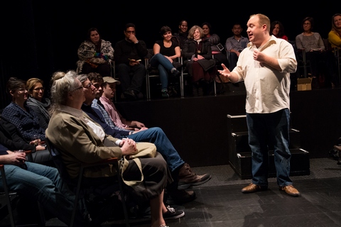 Jonny Donahoe in a scene from “Every Brilliant Thing” at the Barrow Street Theatre (Photo credit: Matthew Murphy)