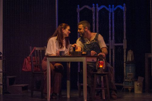 As the coarse, wily, virile Chicken, Michael Keller is a three-dimensional character even in this short play, a brother to such iconic Williams characters as Stanley and Brick. Playing a cat-and-mouse game with street-wise Myrtle he gains the upper hand quite quickly. The tall, slim statuesque Judy Jerome would seem strange casting for Myrtle who is described as “short, stocky and ample of hips and bosom” as well as ten years older than her husband. However, as the 30-year-old independent Myrtle who has been around the block since she was fifteen, Jerome makes the role her own as she jockeys for power with Chicken as they tell each other the story of their lives. The sexual tension between them becomes palpable as the storm approaches. Justin R. G. Holcomb as Lot is seen briefly before he drags himself upstairs for the duration of the play. Director Fried has chosen to ignore Williams’ description of Lot as “a frail, delicately pretty youth of twenty” with the seemingly mature Holcomb.