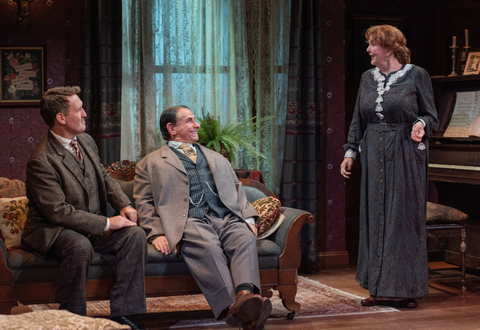 All of the characters in the play’s first half (the script’s Act I and II) do nothing but either complain about the grind of their daily six-days-a-week jobs (half-holiday on Saturday) or laugh at those who would give up a steady employment. You would think that back in 1909 when the play was written there wasn’t anything else to talk about. Jenn Thompson’s direction is conventional and sedate where something more animated might have been more to the point.