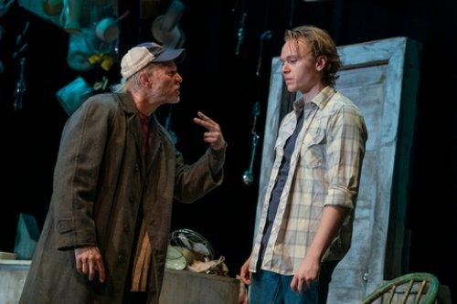 Young Emma, Wesley’s sister (Lizzy DeClement, awkward, hyperactive and shrill) has her own pipe dreams, some small, like winning a 4-H competition and some large, like leaving when she’s old enough; but even her 4-H fantasy is aborted by the use of the show chicken she raised cooked without her knowledge for a quick meal. She gets herself in trouble with the law by Act Two and quickly learns that crime pays.