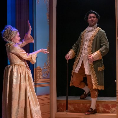 The other actors (Bonnie Black, Erika Vetter and Zaven Ovian) are stylish but do not always distinguish their multiple characters one from the other. Particularly problematic is that Erika Vetter is sometimes Emilie when young, sometimes her daughter, and at other times serving maids passing through. The production is quite elegant from the blue and beige 18th century room by Sarah White to the chic period costumes by Christina Beam. The lovely original music is by Ian McNally.