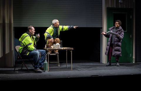On the surface, Will Arbery’s latest play to reach New York, Evanston Salt Costs Climbing, is a workplace drama like Samuel D. Hunter’s A Bright New Boise, Lynn Nottage’s Clyde’s, and Dominique Morisseau’ Skeleton Crew. However, it very quickly becomes clear that it is a play about climate change, ecology and modern angst. Very different from Arbery’s Plano, Heroes of the Fourth Turning and Corsicana, this play from 2018 eventually becomes an Ionesco exercise in absurdism with appearance by city planner Jane Jacobs and a mystical figure called “The lady in the purple hat.” Director Danya Taymor’s production for The New Group takes these shifts in stride but may leave the audience behind.